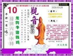 088期开奖时间2026年03月29 星期日)晚9:30开(农历二月十一 虎冲猴)